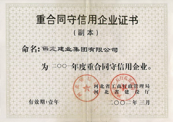 03年度保定市優(yōu)秀質(zhì)量管理單位