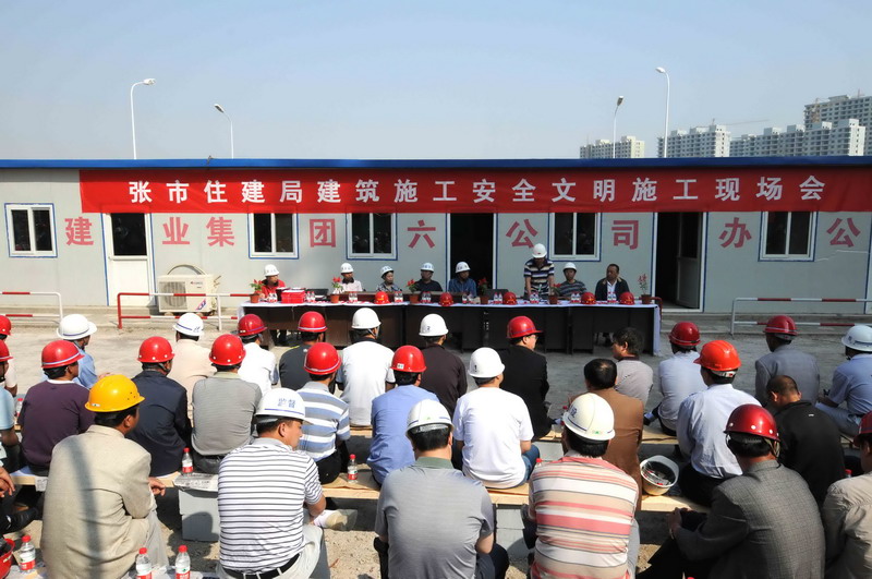 在會上,由集團公司副總魏長青代表項目部介紹了我集團公司自進入張家口市以來在文明施工、安全生產等方面所取得的一些成績和總結的經驗,以及目前項目部的大致情況,表示要以實現質量、文明施工雙省優為目標,在張家口市樹立起保定建業集團的良好企業形象,和各界朋友一同為推進張家口市的快速建設發展貢獻力量。