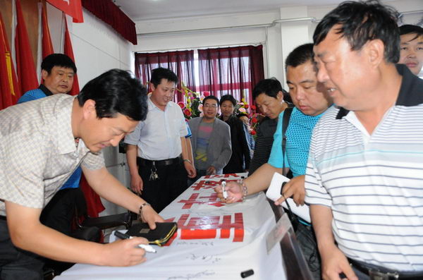 安監站領導與董事長在安全宣傳標語上簽名
