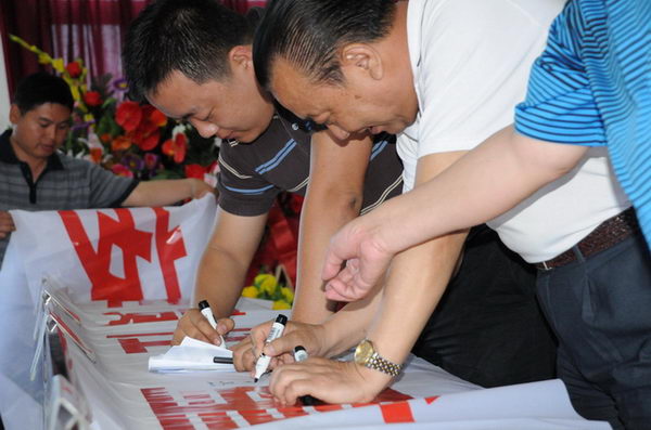 隨著全體與會人員在安全生產宣傳標語上簽名,集團公司安全生產百日賽暨安康杯競賽活動正式拉開了序幕。